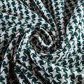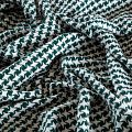 Костюмный твид с темно-зеленого оттенка с геометрическим узором молочного цвета. Ткань плотная, мягкая, приятная на ощупь, прочная, не вытирается. Отличный выбор для осенних костюмов, облегченного пальто, куртки, бомбера, юбки, шорт или теплого платья.