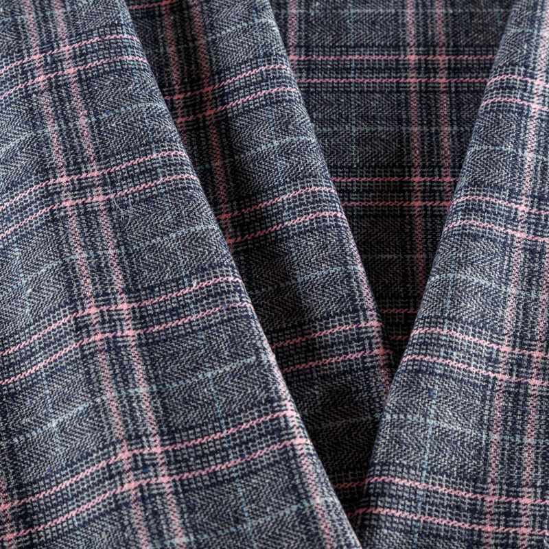 Фактурная и плотная твидовая ткань с добавлением хлопка в красивую черно-серую клетку, которую освежают розовые и голубые полоски. Ткань мягкая, пластичная, приятная на ощупь. Хорошо драпируется и образует формоустойчивые складки. Твид отлично подходит для пошива костюмов, пальто, пиджаков, брюк и курток, юбок, жилетов, головных уборов в классическом стиле.