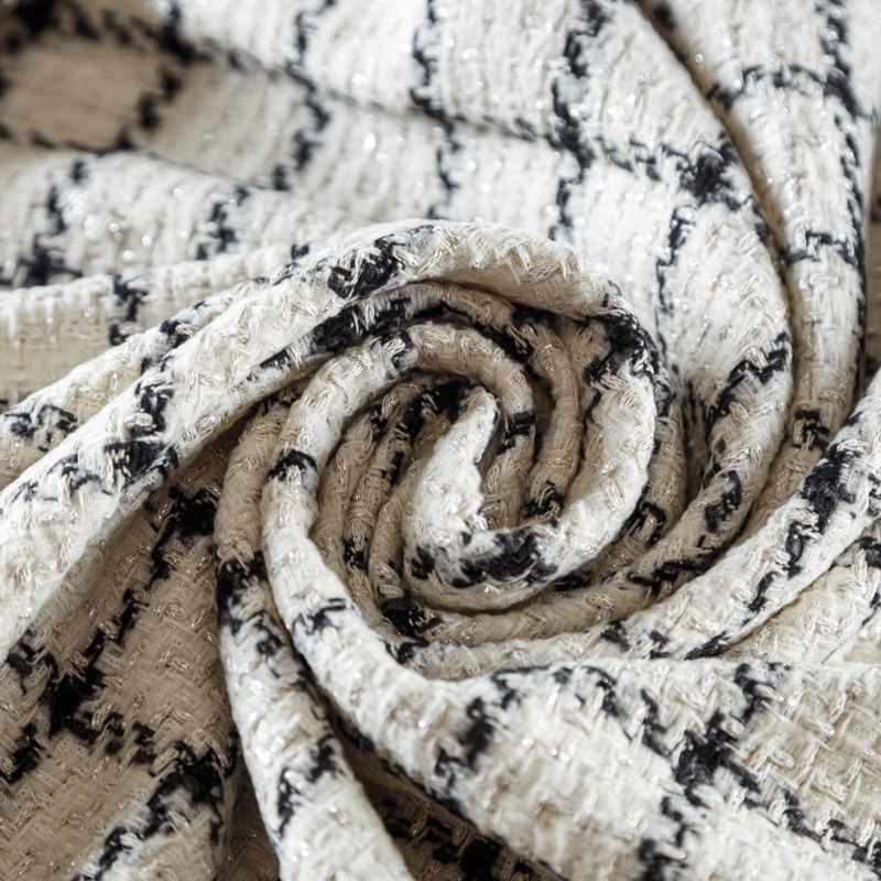 Фактурная твидовая ткань с добавлением шерсти и хлопка. Ткань мягкая, пластичная, приятная на ощупь. Хорошо драпируется и образует формоустойчивые складки. Твид отлично подходит для пошива костюмов, пальто, пиджаков, шорт и курток, юбок, жилетов, головных уборов в классическом стиле.
