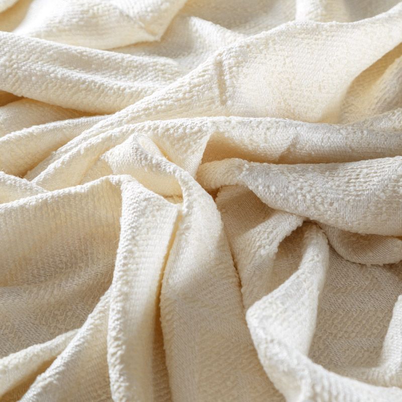 Полушерстяной итальянский твид с хлопком сливочного оттенка. Ткань средней плотности, в меру объемная с легким эффектом букле из нитей того же цвета, которые образуют геометрический узор. Твид мягкий, пластичный, умеренно держит форму, прекрасно подойдет для пошива жакетов на подкладке, жилетов, кардиганов, легких пальто, юбок и платьев.