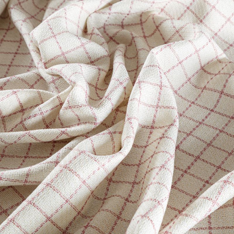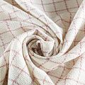 Отличительная особенность этой ткани в полотняном плетении нитей, характерного для рогожки, олицетворяющая сложную "клетчатую" геометрию в розово-молочных оттенках. Различная толщина нитей создает эффектную фактуру. Ткань достаточно формоустойчивая, при этом пластичная, гибкая за счет плетения,  матовая, мягкая, приятная на ощупь, не рыхлая. Прекрасно подойдет для пошива жакета, юбки в виде трапеции, легкого пальто, костюма.