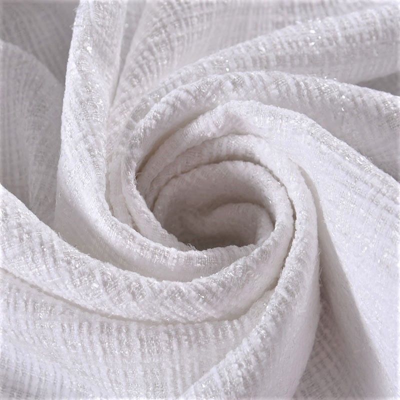 Мягкая, пластичная и объемная ткань, с разреженной и рельефной вывязанной структурой. Буклированный твид в стиле Шанель буквально соткан из различных по толщине и текстуре нитей, образующих рисунок в виде клетки. В плетение добавлена блестящая люрексная нить. Твид идеально подходит для пошива платьев, юбок, жакетов, легких пальто, эффектных бомберов и курток.