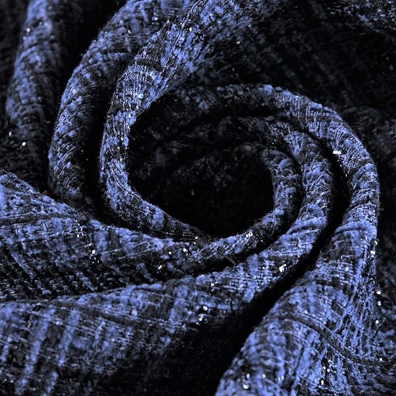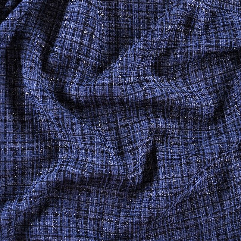 Мягкая, пластичная и объемная ткань, с разреженной и рельефной вывязанной структурой. Буклированный твид в стиле Шанель буквально соткан из различных по толщине и текстуре нитей, образующих рисунок в виде клетки. В плетение добавлена блестящая люрексная нить. Твид идеально подходит для пошива платьев, юбок, жакетов, легких пальто, эффектных бомберов и курток.