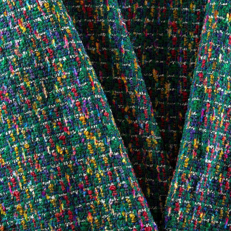 Переплетение разноцветных нитей делает эту ткань универсальной, и в тоже время оригинальной. Полотно плотное, но очень мягкое. Теплое, комфортное. Плетение не рыхлое, поверхность фактурная, поэтому изделия выглядят достаточно объемно. Подойдет для пошива костюмов с юбкой, жакетов, облегченных пальто.