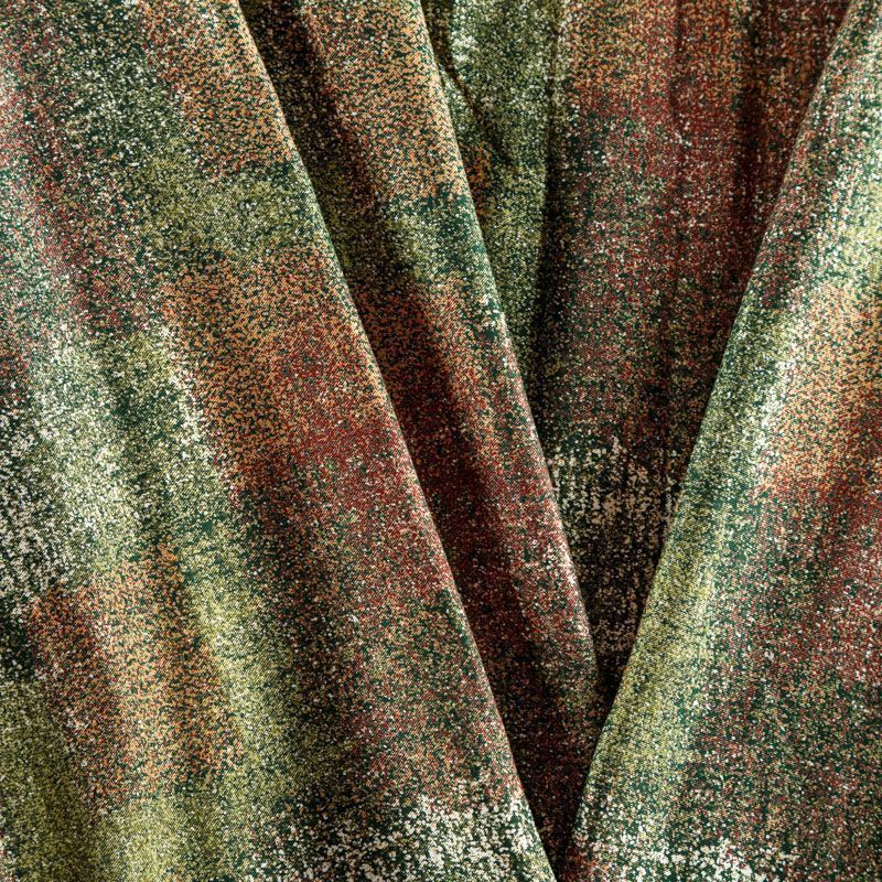 Плотная и мягкая ткань зеленого оттенка с абстрактным принтом, имеет саржевое плетение и характерный диагональный рубчик на поверхности. Отлично сохраняет форму, не сильно мнется и не деформируется в процессе эксплуатации. Красиво ложится в складки, поэтому прекрасно подойдет на длинные драпированные юбки и платья, на свободные брюки или шорты, топы.