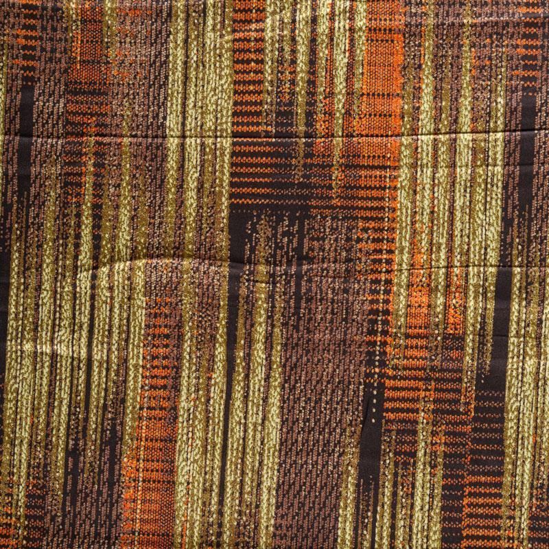 Плотная и мягкая ткань темно-серого оттенка с абстрактным принтом, имеет саржевое плетение и характерный диагональный рубчик на поверхности. Отлично сохраняет форму, не сильно мнется и не деформируется в процессе эксплуатации. Красиво ложится в складки, поэтому прекрасно подойдет на длинные драпированные юбки и платья, на свободные брюки или шорты, топы, платья-рубашки, комбинезоны, а также для домашней одежды.