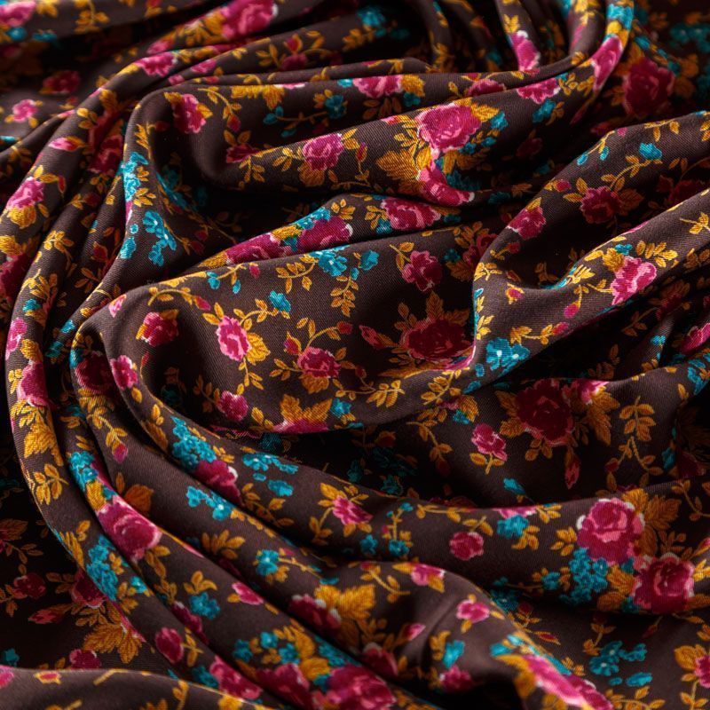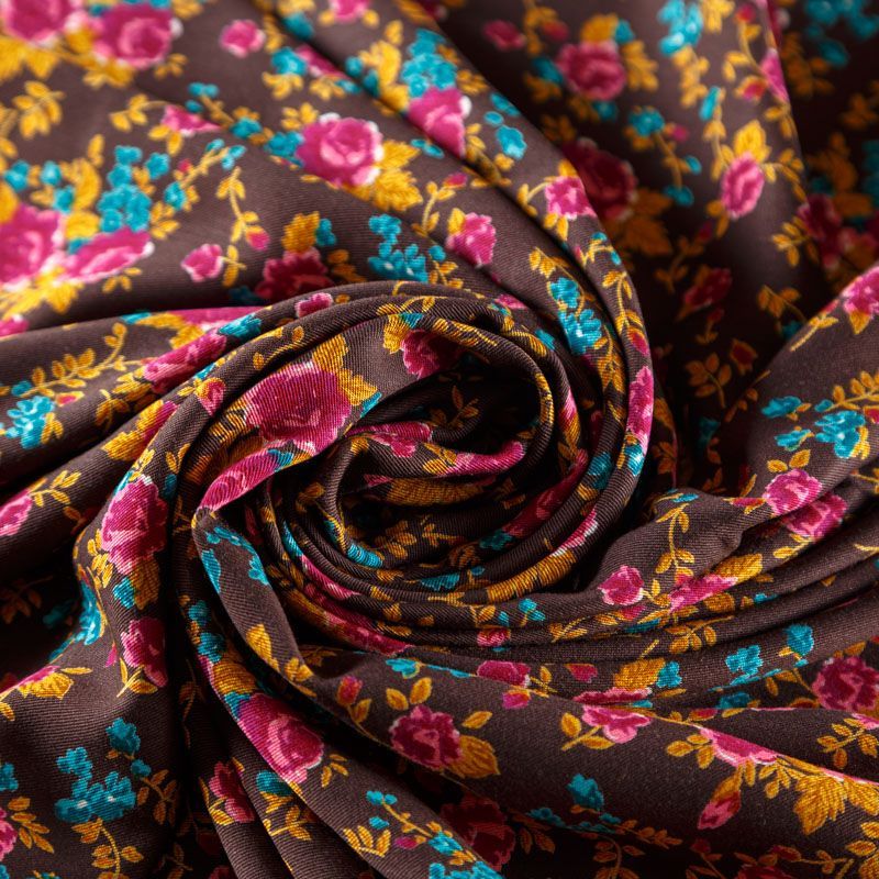 Твил-штапель 069-08289 коричневый принтованный