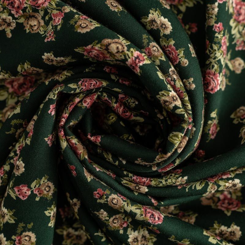 Твил-штапель К34-030 изумрудно-зеленый принтованный в Салехарде