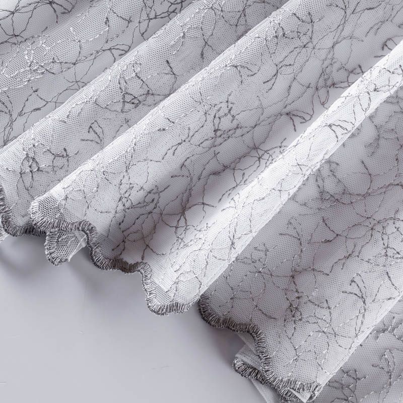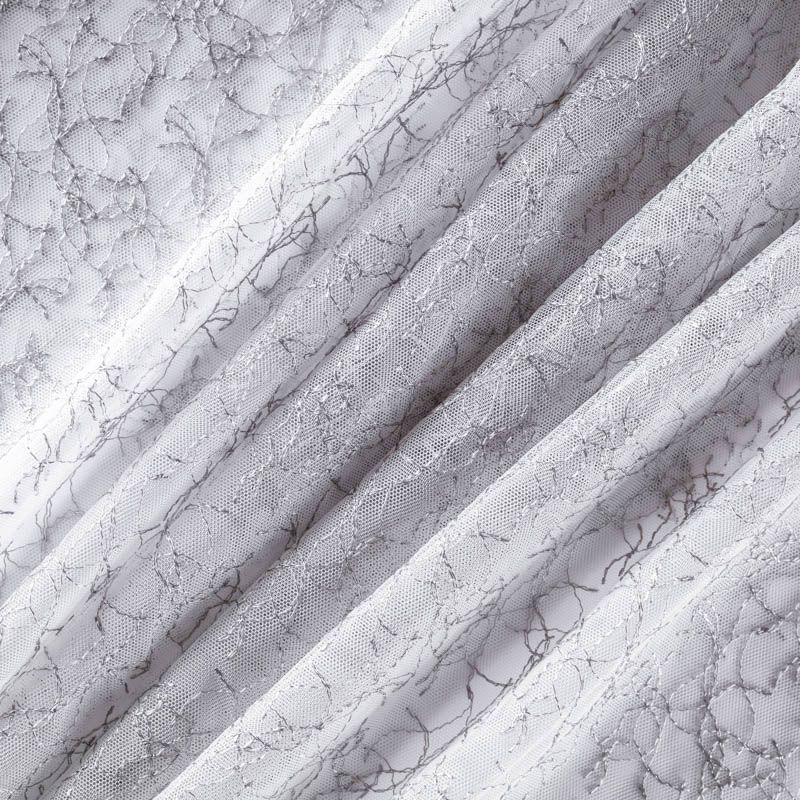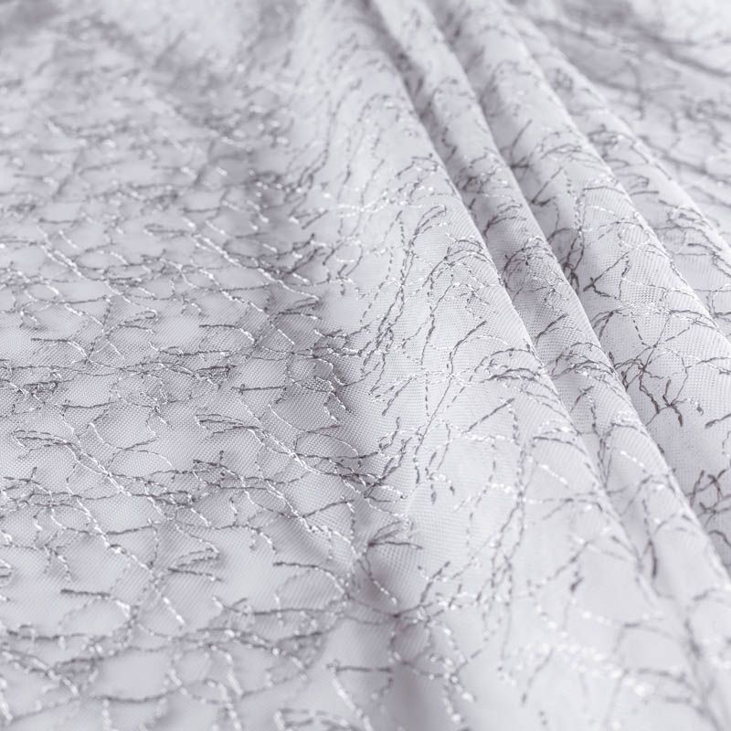 Сетка с вышивкой – это роскошный элемент дизайна, который преобразит любое помещение. Она отлично пропускает воздух, поэтому быстро сохнет после стирки. Прочная, ткань прослужит долго. Выдерживает большое количество стирок. Легкая, фактура ткани практически невесома, поэтому можно не опасаясь крепить ее даже на самый тонкий карниз. Вышивка в виде стилизованной паутинки серебристо-серого цвета расположена по всей высоте ткани, нижний край без утяжелителя, фигурный.