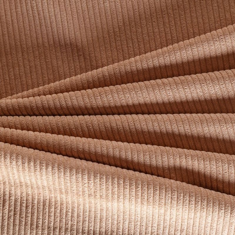 Плательно-костюмный вельвет средней плотности, но удивительно мягкий с матовым блеском и бархатистой поверхностью. За счет вытравки ворса лицевая сторона фактурная, в рубчик средней толщины. Ткань очень пластичная, хорошо и мягко драпируется, не мнется. Прекрасно подходит для пошива костюмов, жакетов, платьев, юбок, брюк, шорт, а также  для изготовления даже детской одежды.