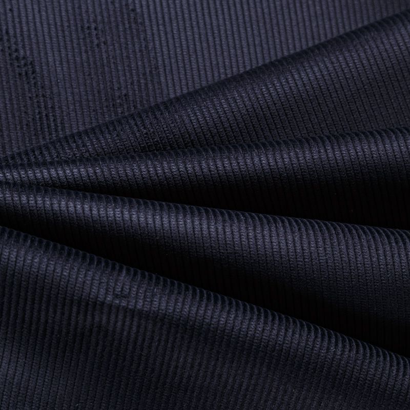 Итальянский костюмно-плательный вельвет из хлопка в черном оттенке. Очень приятный тактильно, поверхность бархатистая, рубчик средней ширины,  не тянется, не просвечивает. Подойдет для пошива костюма, платья, юбки, брюк, верхней одежды.