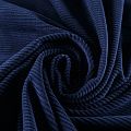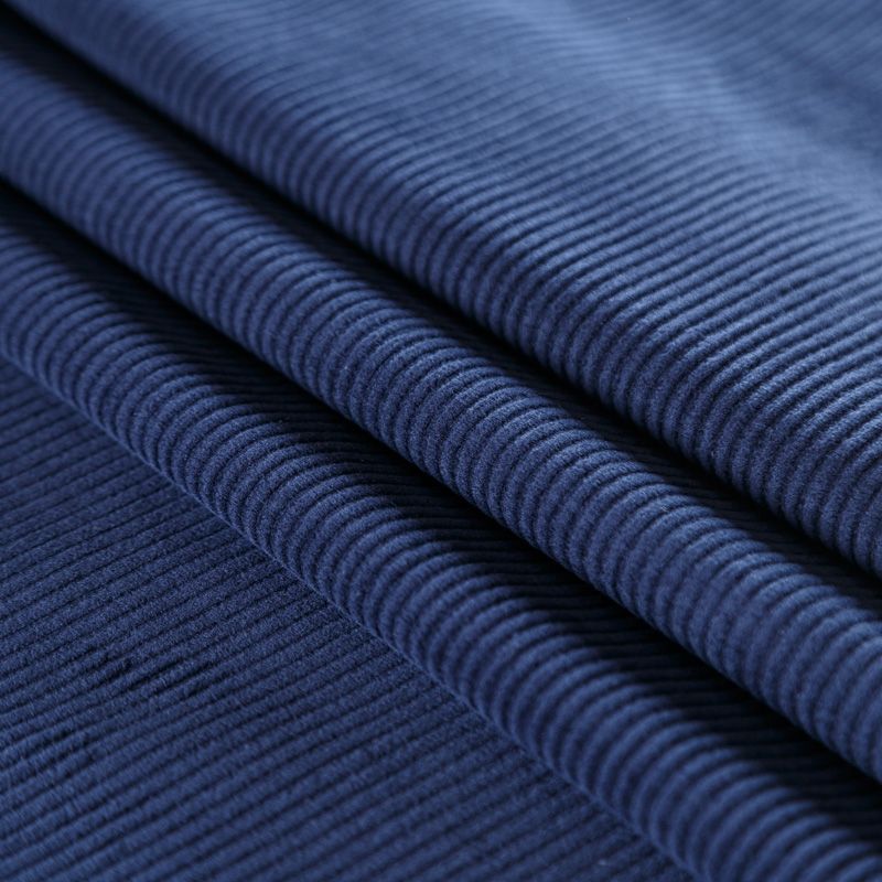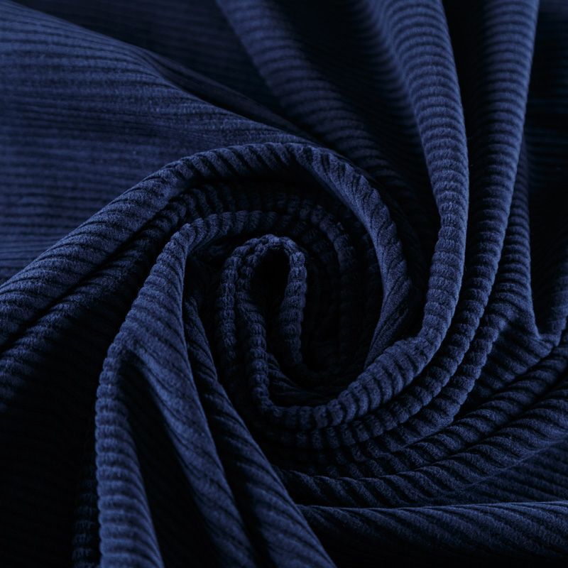 Итальянский костюмно-плательный вельвет из хлопка в глубоком синем оттенке. Очень приятный тактильно, поверхность бархатистая, рубчик средней ширины, тянется за счет эластана в составе, не просвечивает. Подойдет для пошива костюма, платья, юбки, брюк, верхней одежды.