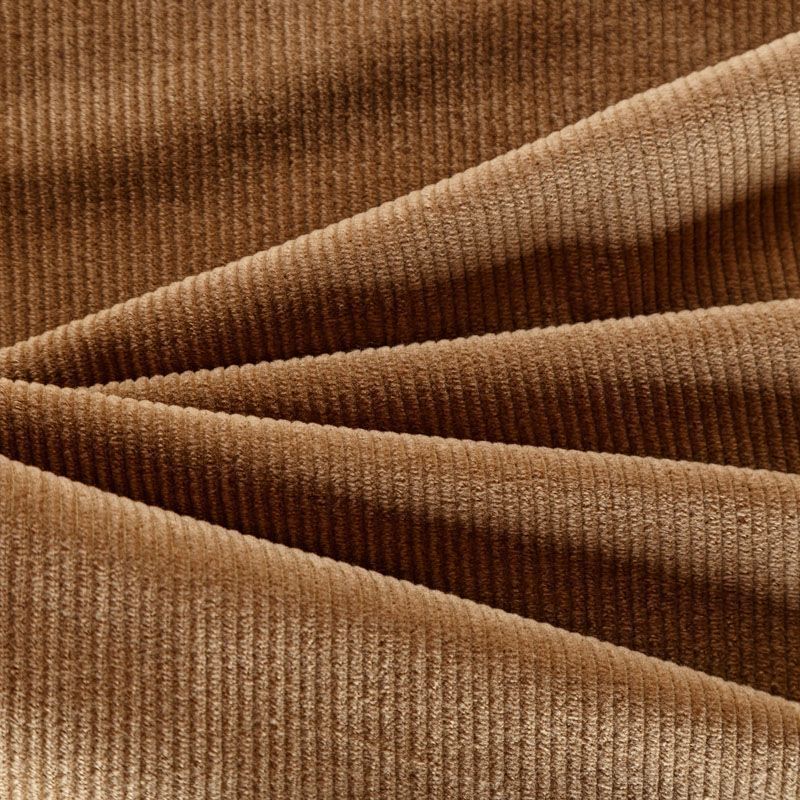 Итальянский хлопковый вельвет костюмно-плательной плотности коричневого оттенка. Ткань имеет матовую фактурную поверхность в рубчик средней ширины, ворс короткий, мягкий и приятный на ощупь. Тянется за счет эластана в составе, хорошо драпируется и держит форму. Прекрасный вариант для пошива костюма, юбки, широких брюк, шорт, комбинезона, жакета, куртки или тренча.