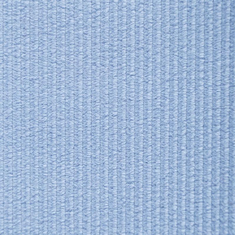 Итальянский хлопковый вельвет костюмно-плательной плотности голубого оттенка. Ткань имеет матовую фактурную поверхность в рубчик средней ширины, ворс короткий, мягкий и приятный на ощупь. Тянется за счет эластана в составе, хорошо драпируется и держит форму. Прекрасный вариант для пошива костюма, юбки, широких брюк, шорт, комбинезона, жакета, куртки или тренча.