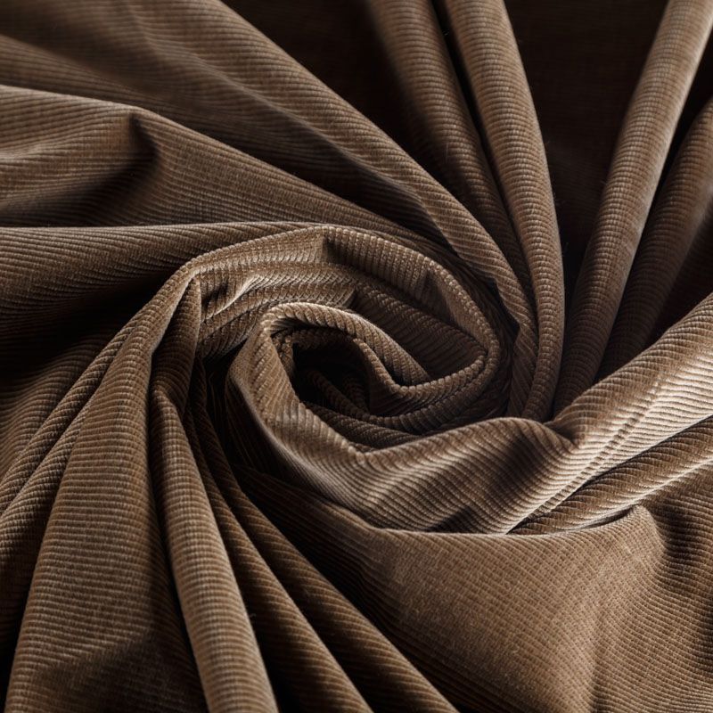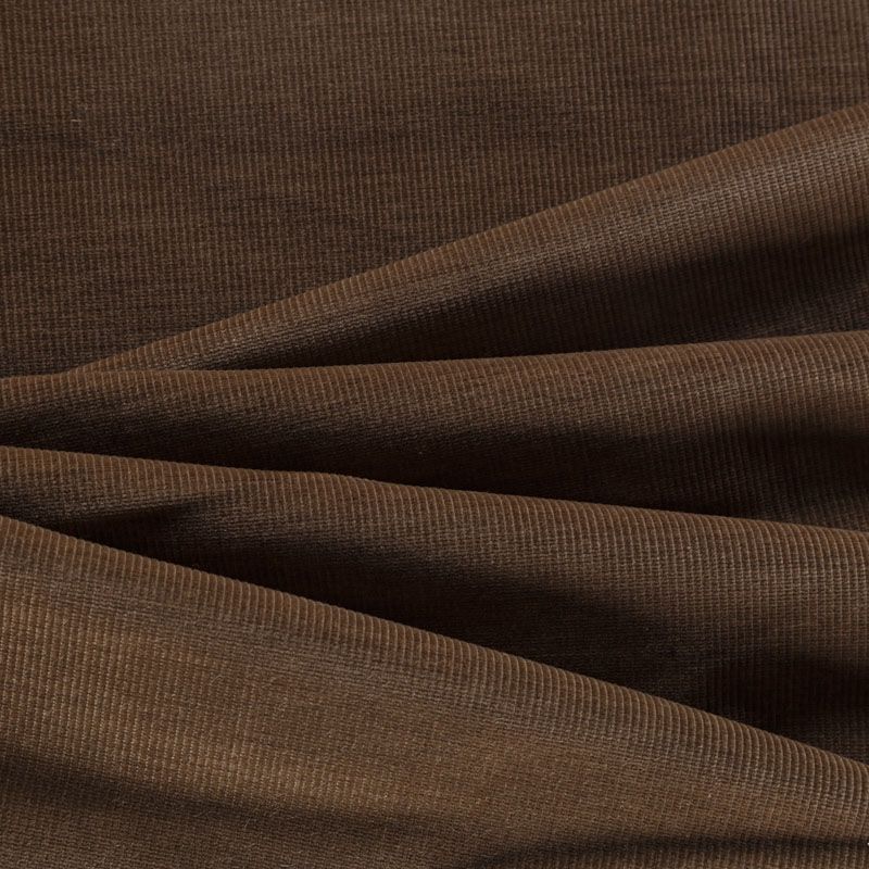Итальянский костюмно-плательный вельвет из хлопка в коричневом оттенке. Очень приятный тактильно, поверхность бархатистая в тонкий рубчик, немного тянется за счет эластана в составе, не просвечивает. Подойдет для пошива костюма, жакета, платья, сарафана, юбки или брюк.