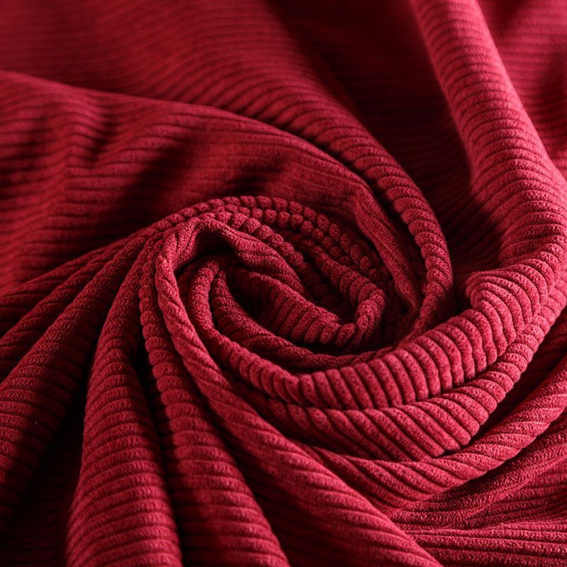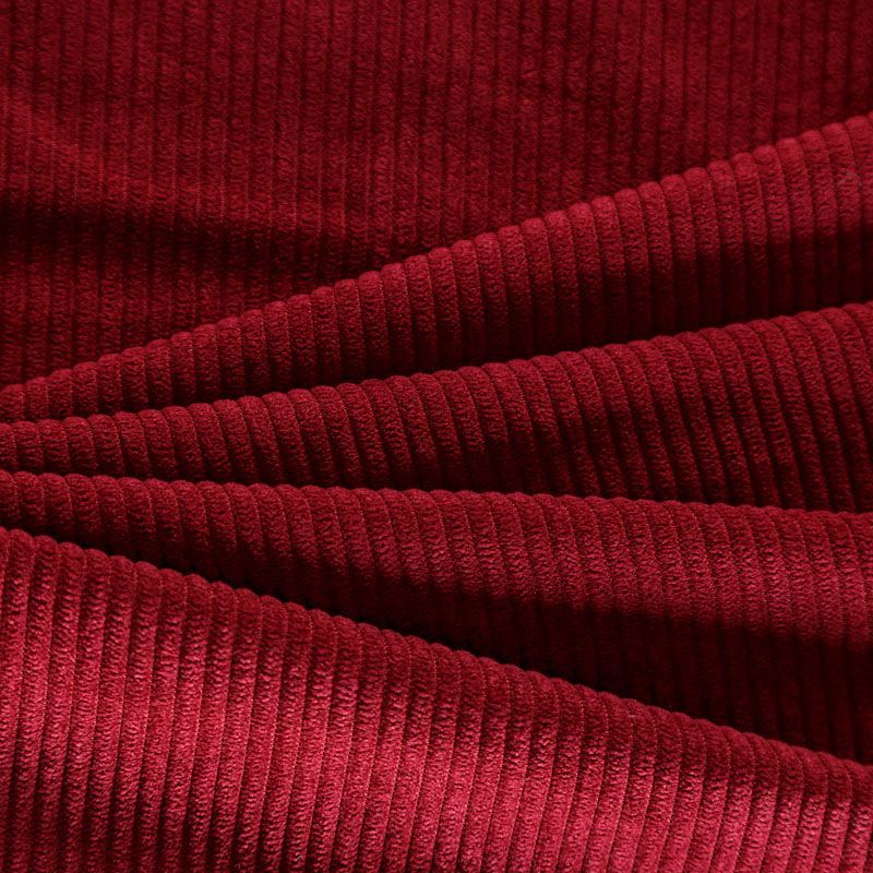 Плательно-костюмный вельвет средней плотности, но удивительно мягкий с матовым блеском и бархатистой поверхностью. За счет вытравки ворса лицевая сторона фактурная, в рубчик средней толщины. Ткань очень пластичная, хорошо и мягко драпируется, не мнется. Прекрасно подходит для пошива костюмов, жакетов, платьев, юбок, брюк, шорт, а также  для изготовления даже детской одежды.