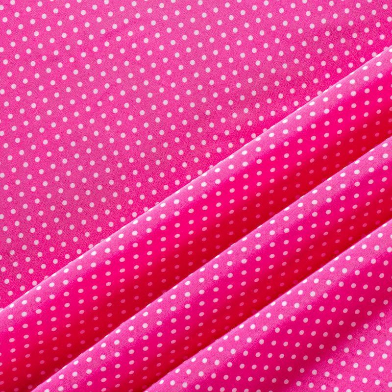 Плательно-рубашечная итальянская вискоза ярко-розового оттенка с принтом в мелкий горошек. Натуральная, дышащая ткань, очень приятная к телу, отлично драпируется, струится, не просвечивает. Хорошо подойдет для пошива платьев, рубашек, платьев-рубашек, блуз, юбок, брюк, летних костюмов, пыльников, детской одежды.