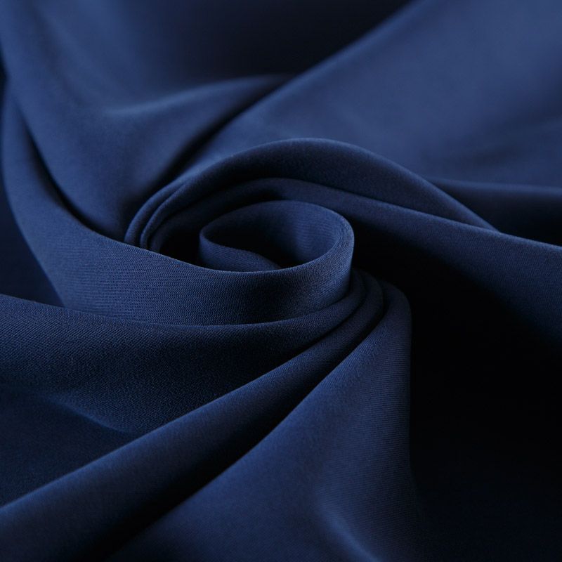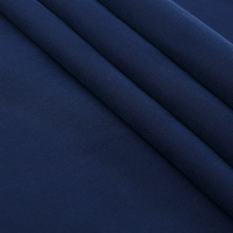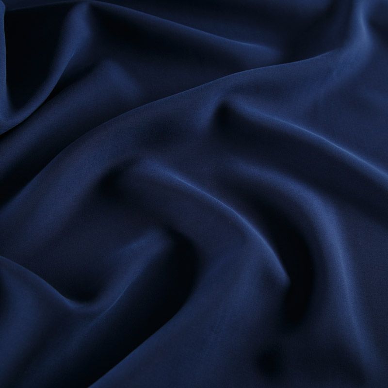 Качественная плотная костюмно-плательная вискоза в темно-синем оттенке. Ткань с диагональным плетением, имеет небольшой благородный матовый блеск, тяжелая, не тянется, прекрасно драпируется и держит форму. Идеально подойдет для пошива костюмов, брюк-карго, джоггеров, платьев, юбок, шорт, пиджаков, комбинезонов.