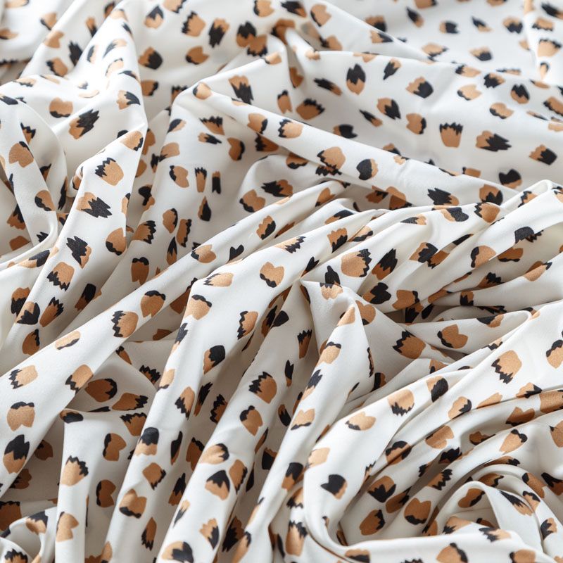 Легкая набивная ткань имеет высокую прочность, большую износоустойчивость. Материал упругий, мягкий, тянется за счет эластана в составе, хорошо драпируется, образует струящиеся складки. Идеально подойдет для пошива блуз, юбок, платьев, сарафанов.