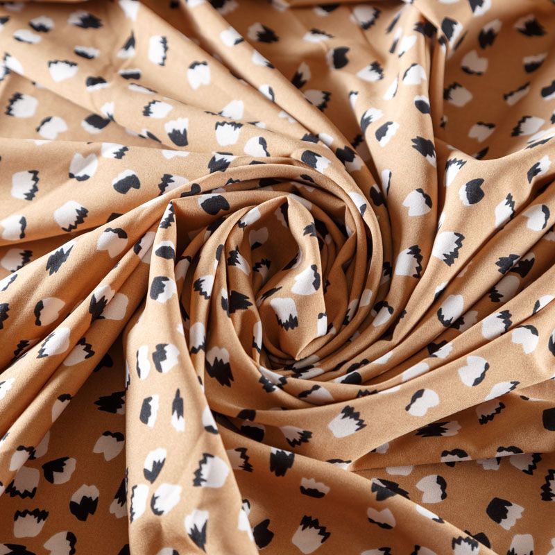 Легкая набивная ткань имеет высокую прочность, большую износоустойчивость. Материал упругий, мягкий, тянется за счет эластана в составе, хорошо драпируется, образует струящиеся складки. Идеально подойдет для пошива блуз, юбок, платьев, сарафанов.