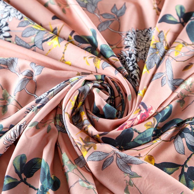 Легкая набивная ткань с цветочным принтом имеет высокую прочность, большую износоустойчивость. Ткань упругая, мягкая и хорошо драпируется, тянется за счет эластана в составе, образует струящиеся складки. Идеально подойдет для пошива блуз, юбок, платьев, сарафанов.