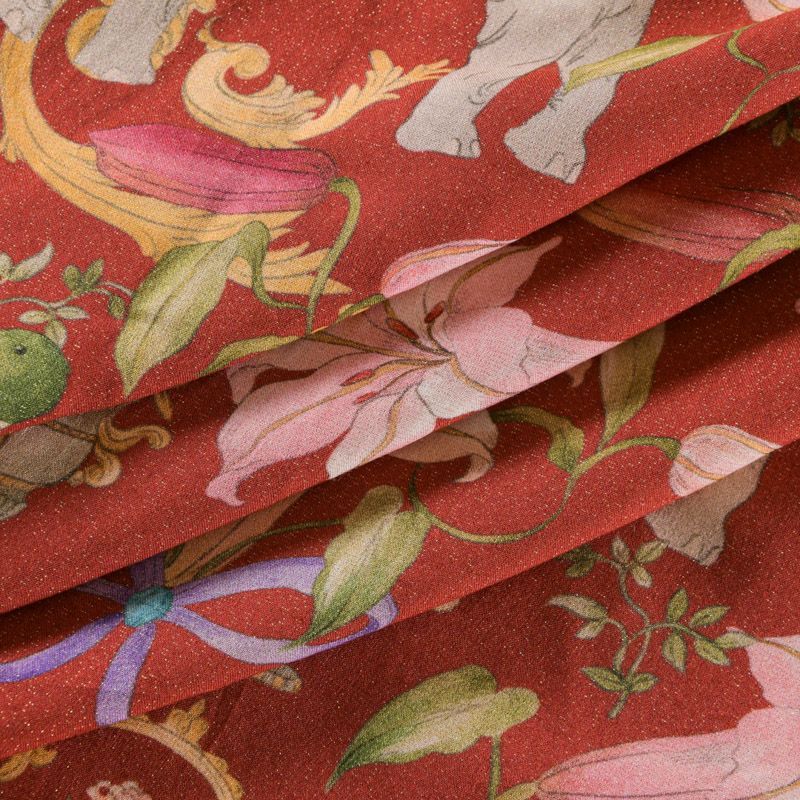 Вискоза с люрексом 009-12100 красно-терракотовый принтованный
