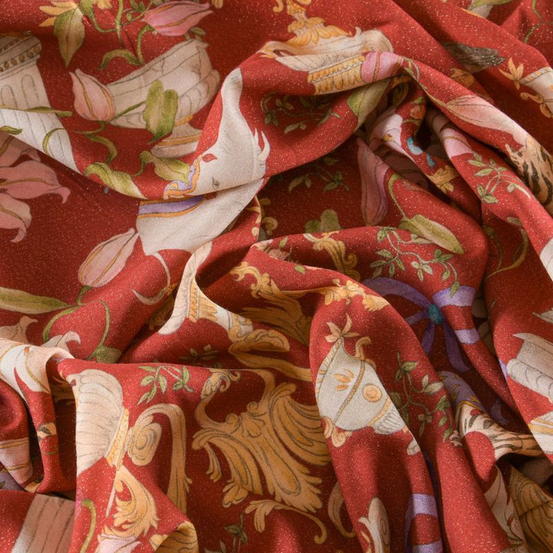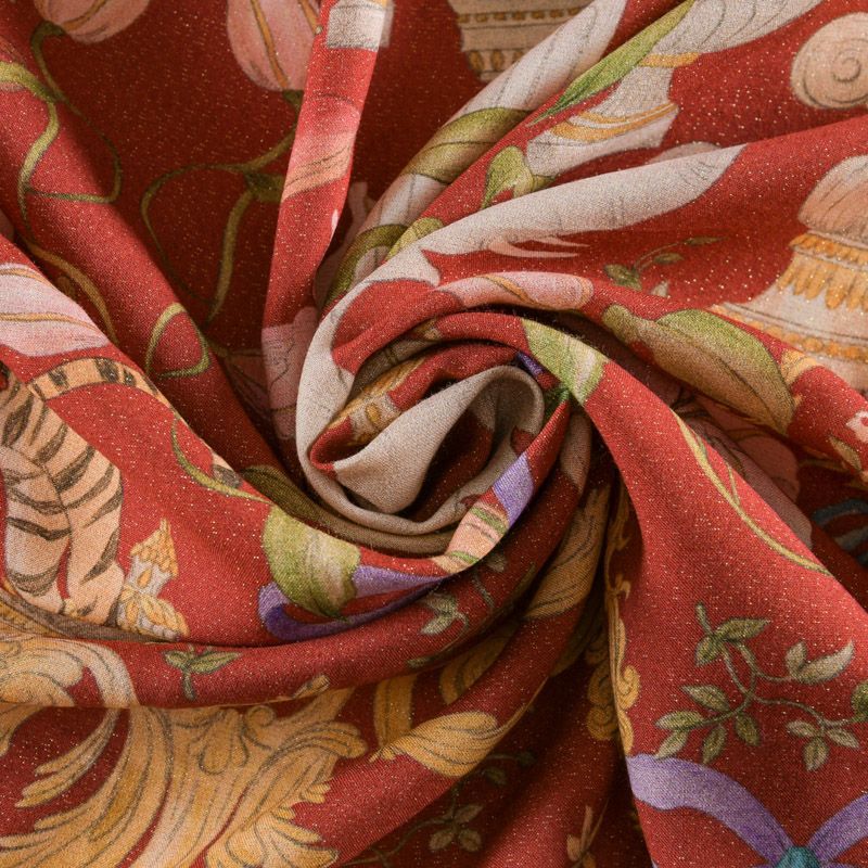 Вискоза с люрексом 009-12100 красно-терракотовый принтованный в Салехарде