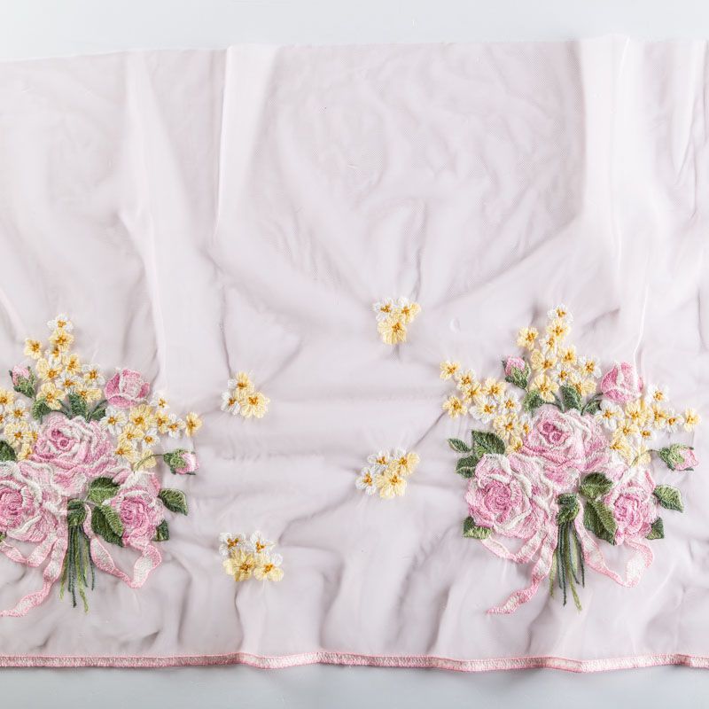 Вышивка на сетке Monnalisa высочайшего качества. Сетка пудрово-розового оттенка, мягкая, приятная на ощупь, отлично драпируется. Богатая объемная вышивка в виде роз выполнена идеально. Подойдет как для самостоятельного изделия: юбка, ярусное платье, так и для декорирования любых изделий: вставка в рукав, оборка и т.д.