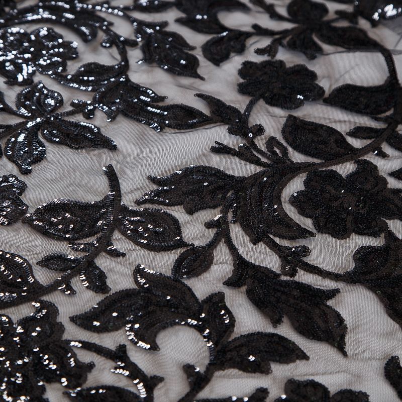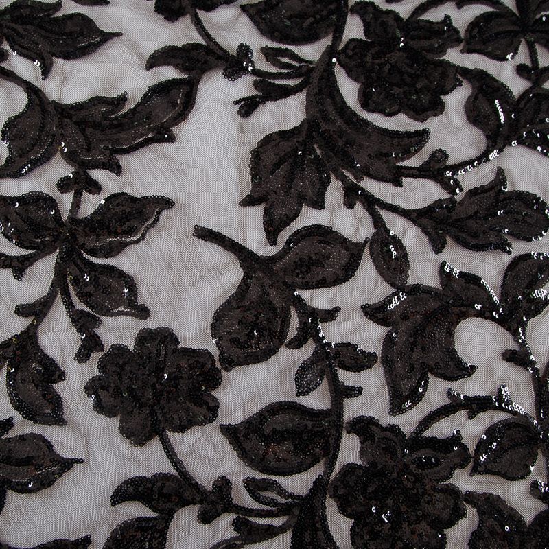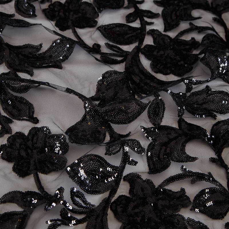 Вышивка с пайетками на сетке Armani 050-19126 черный в Салехарде