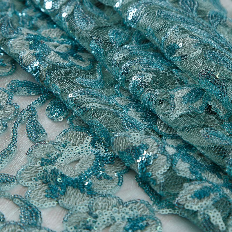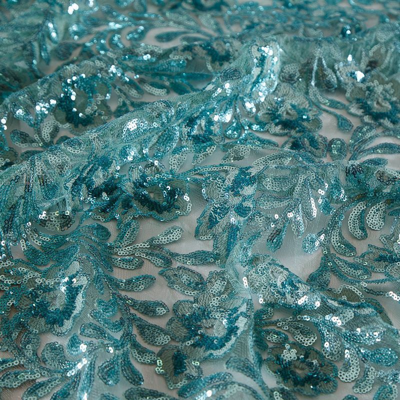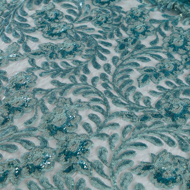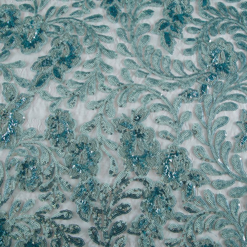 Вышивка с пайетками на сетке Armani 050-19131 морская волна в Салехарде