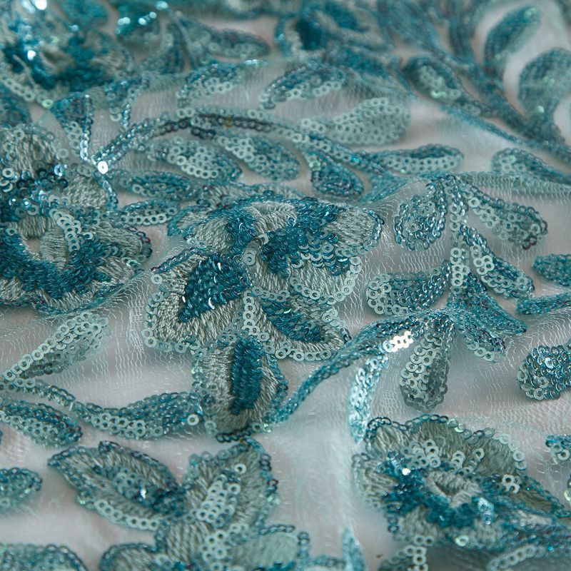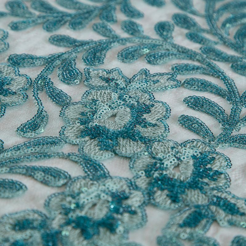 Вышивка с пайетками на сетке Armani 050-19131 морская волна