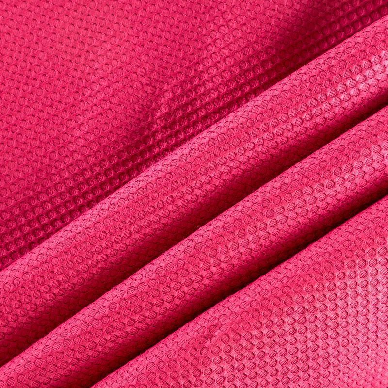 Итальянский хлопковый жаккард насыщенного оттенка фуксии с мелким орнаментом. Ткань легкая, но плотная, поверхность матовая и текстурная, хорошо драпируется и держит форму, тянется за счет эластана в составе, не просвечивает. Подойдет для пошива нарядных вечерних костюмов, корсетов, платьев-футляров, жакетов, топов, легких пальто, бомберов, юбок или шорт.