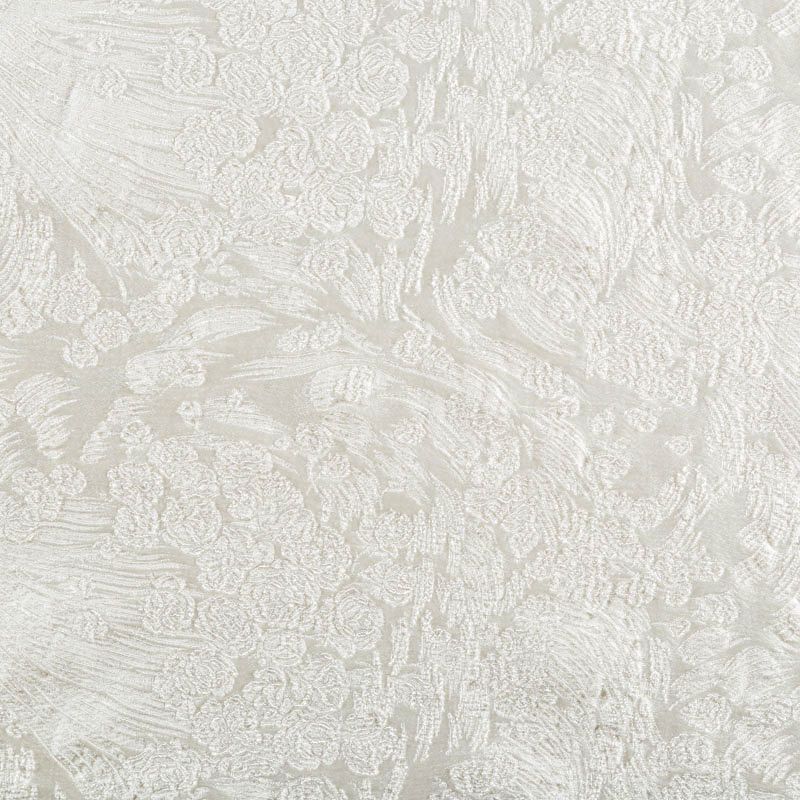 Итальянский жаккард с красивым орнаментом оттенка молочного жемчуга. Ткань легкая, но плотная, поверхность со сдержанным блеском, объемная и текстурная, хорошо драпируется и держит форму, тянется за счет эластана в составе, не просвечивает. Подойдет для пошива нарядных вечерних костюмов, корсетов, платьев-футляров, жакетов, топов, легких пальто, бомберов, юбок или шорт.