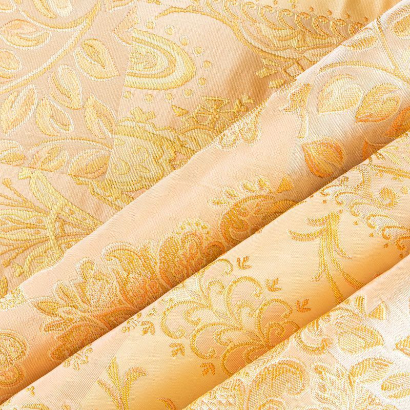 Итальянский жаккард с красивым сложным орнаментом, имитирующим вышивку, персикового оттенка. Ткань плотная, поверхность со сдержанным блеском объемная и текстурная, хорошо драпируется и держит форму, не тянется, не просвечивает. Подойдет для пошива нарядных вечерних костюмов, жакетов, корсетов, платьев-футляров в стиле Dior, легких пальто, бомберов, юбок или шорт.