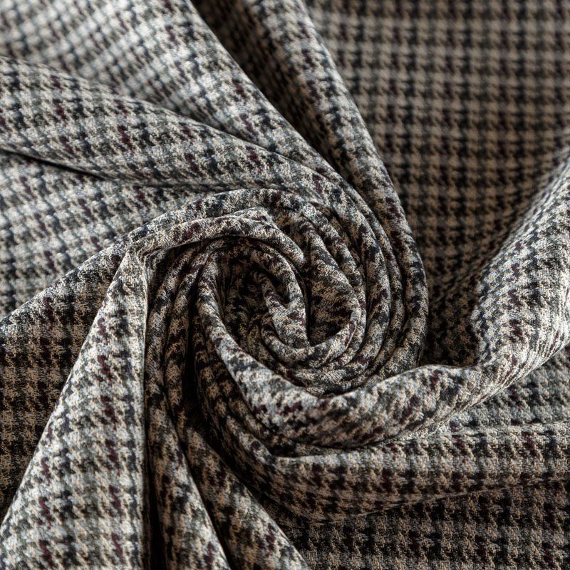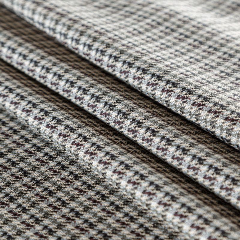 Итальянский костюмно-плательный жаккард в сером оттенке с классическим дизайном. Ткань плотная, поверхность матовая, слегка фактурная за счет плетения, хорошо драпируется и держит форму, тянется за счет эластана в составе, не просвечивает. Подойдет для пошива брючного костюма, платьев, жакетов, легких пальто, бомберов, юбок или шорт.