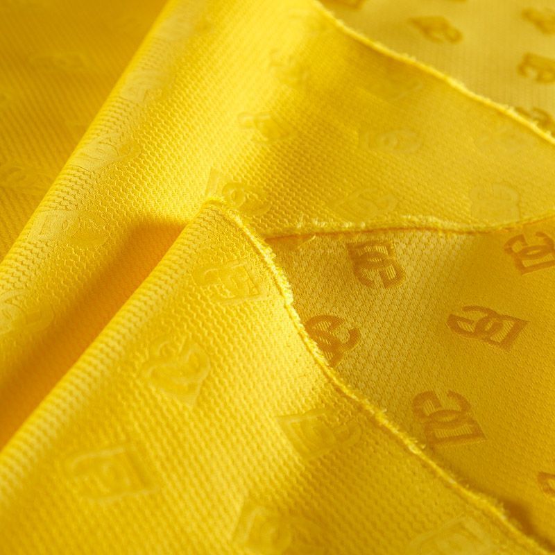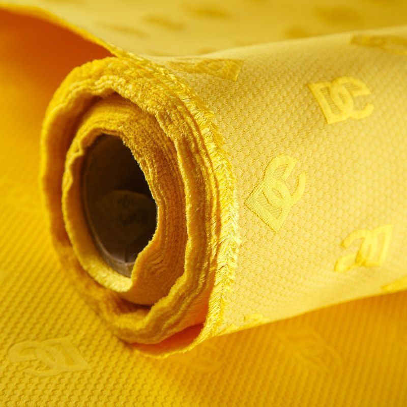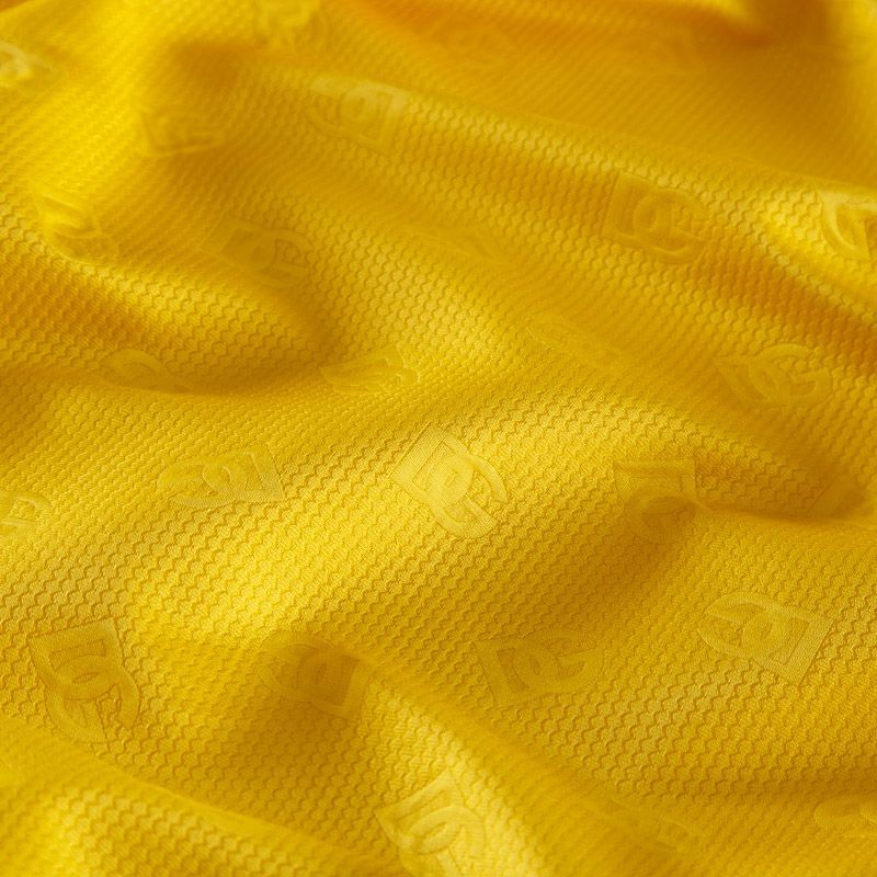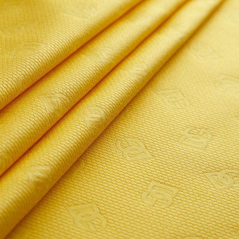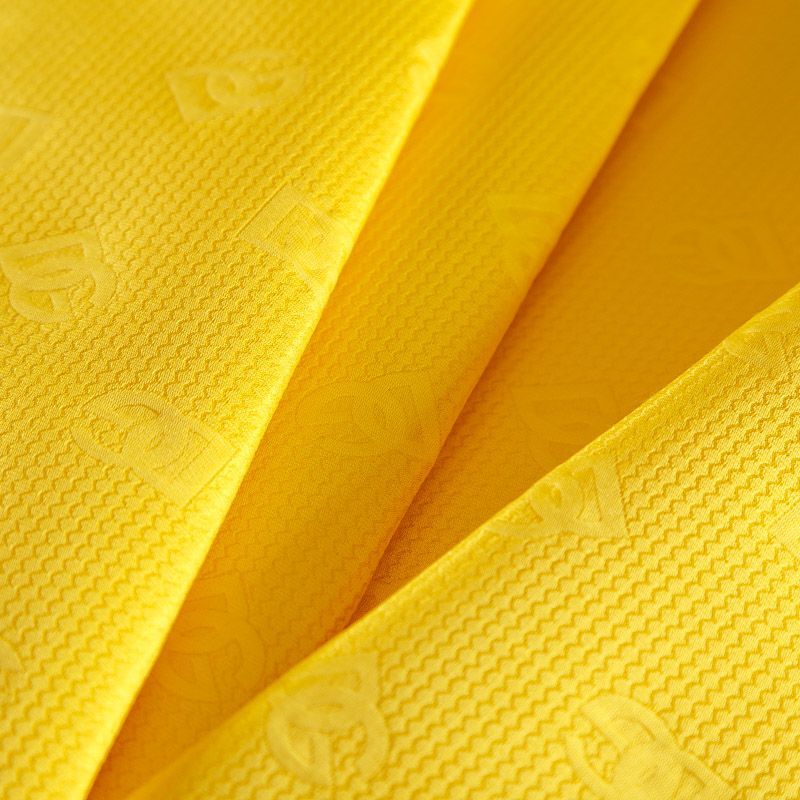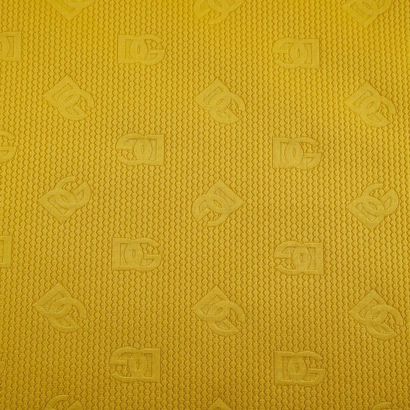 Итальянский смесовый жаккард из коллекции D&G я ярком желтом оттенке. Ткань плательно-костюмной плотности, держит форму. Поверхность фактурная с лого бренда. Подойдет для пошива жакета, брюк, юбки, платья, шорт, кейпа.