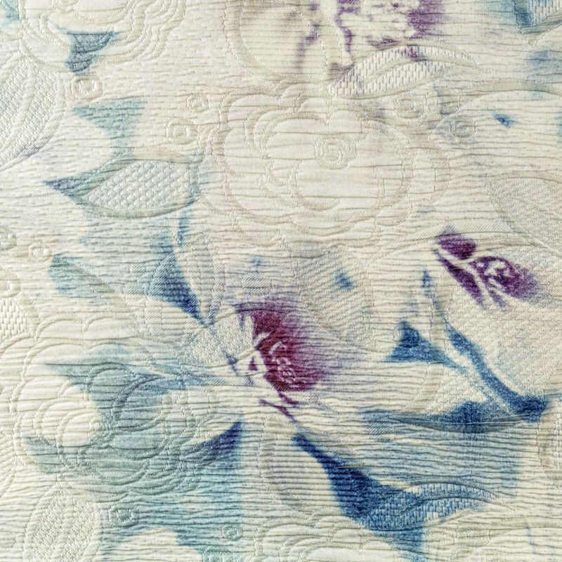 Итальянский жаккард с абстрактным акварельным принтом и цветочным дизайном. Ткань плотная, поверхность со сдержанным блеском, объемная и текстурная, хорошо драпируется и держит форму, не тянется, не просвечивает. Подойдет для пошива нарядных вечерних костюмов, платьев-футляров в стиле Dior, жакетов, топов, летних пальто, бомберов, юбок или шорт.