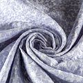 Молочный рельефный фон итальянского жаккарда  дополнен узором из объемных разновеликих цветов простой формы холодного голубого оттенка. Ткань легкая, средней плотности, не просвечивает, не тянется. Хорошо держит форму и драпируется. Идеально подойдет для платьев различных силуэтов, костюмов, жакетов, юбок, шорт, легких пальто.
