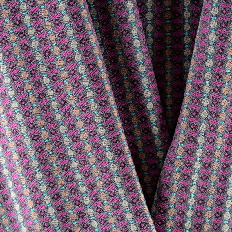 Мягкий хлопковый жаккард в сером цвете с разноцветным мелким абстрактным узором. Ткань пластичная, непрозрачная, приятная на ощупь, тянется за счет эластана в составе, форму не держит, но хорошо драпируется красивыми складками. Будет комфортна для пошива костюма, женственного платья, юбки или брюк.
