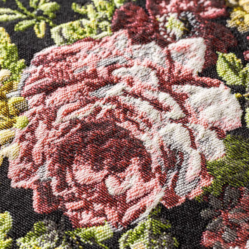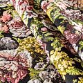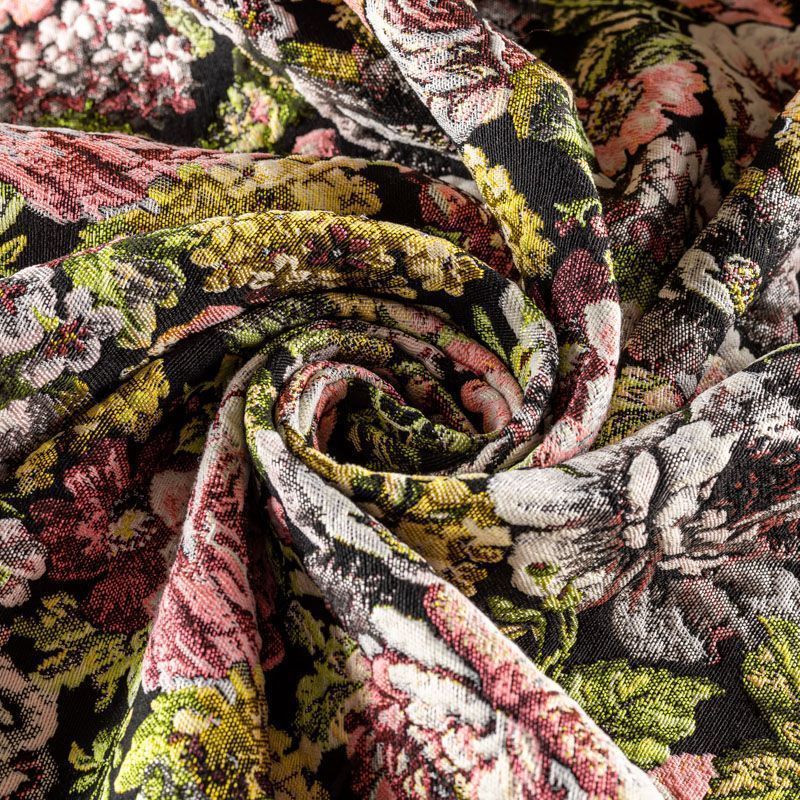 Итальянский пальтовый жаккард с добавлением шерсти черного цвета с пестрым цветочным узором, который создает оригинальный объемный эффект. Фактура ткани напоминает тканое полотно, ткань плотная, практичная и прочная. Она хорошо держит форму. Отлично подойдёт для пошива утепленного или легкого пальто, жилета, бомбера, жакета, юбки.