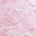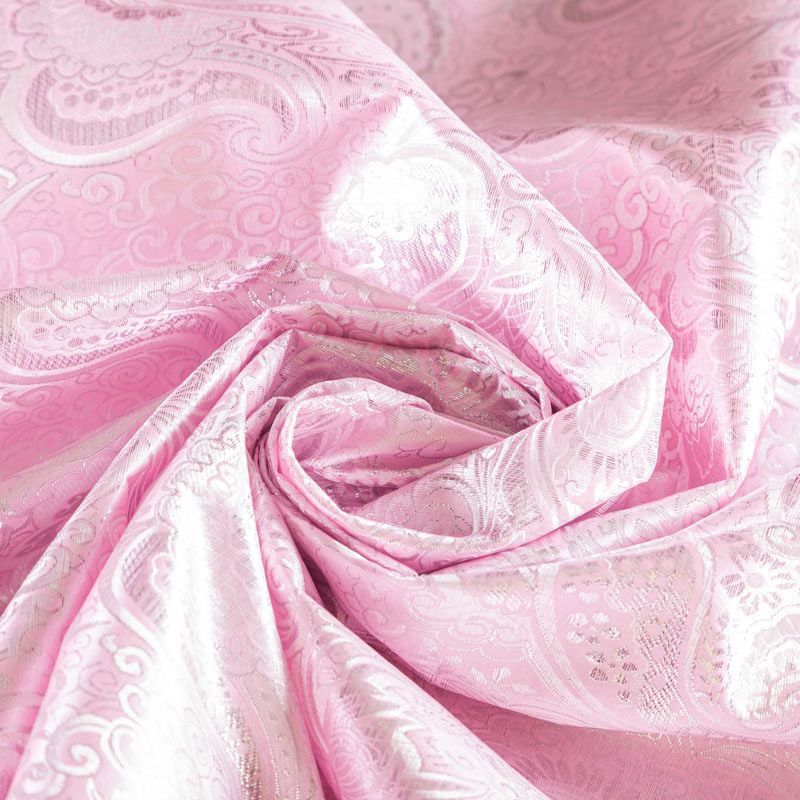 Парчевый жаккард плотного переплетения с декоративной поверхностью, с орнаментом пейсли из блестящих нитей. Ткань легкая, отлично драпируется, держит форму, отличается прочностью, долговечностью, износостойкостью и простотой в уходе, не смотря на свою высокую декоративность. Нарядность ткани придает серебристая люрексовая нить. Подходит для пошива юбок, платьев, топов, сценических костюмов.