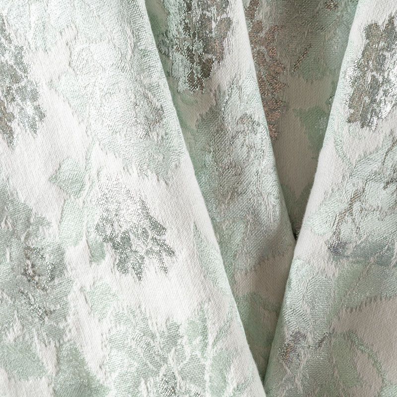 Итальянский хлопковый жаккард нежного мятного оттенка с добавлением люрексовой серебристой нити с растительным дизайном. Ткань легкая, но плотная, поверхность матовая, фактурная, хорошо драпируется и держит форму, не тянется и не просвечивает. Подойдет для пошива нарядных вечерних костюмов, платьев-футляров в стиле Dior, жакетов, топов, летних пальто, бомберов, юбок или шорт.