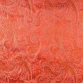 Насыщенная ткань плотного переплетения с декоративной поверхностью, покрытая сложным орнаментом из блестящих нитей. Ткань легкая, отлично драпируется, держит форму, отличается прочностью, долговечностью, износостойкостью и простотой в уходе, не смотря на свою высокую декоративность. Нарядность ткани придает золотая люрексовая нить. Подходит для пошива юбок, платьев, топов, сценических костюмов.